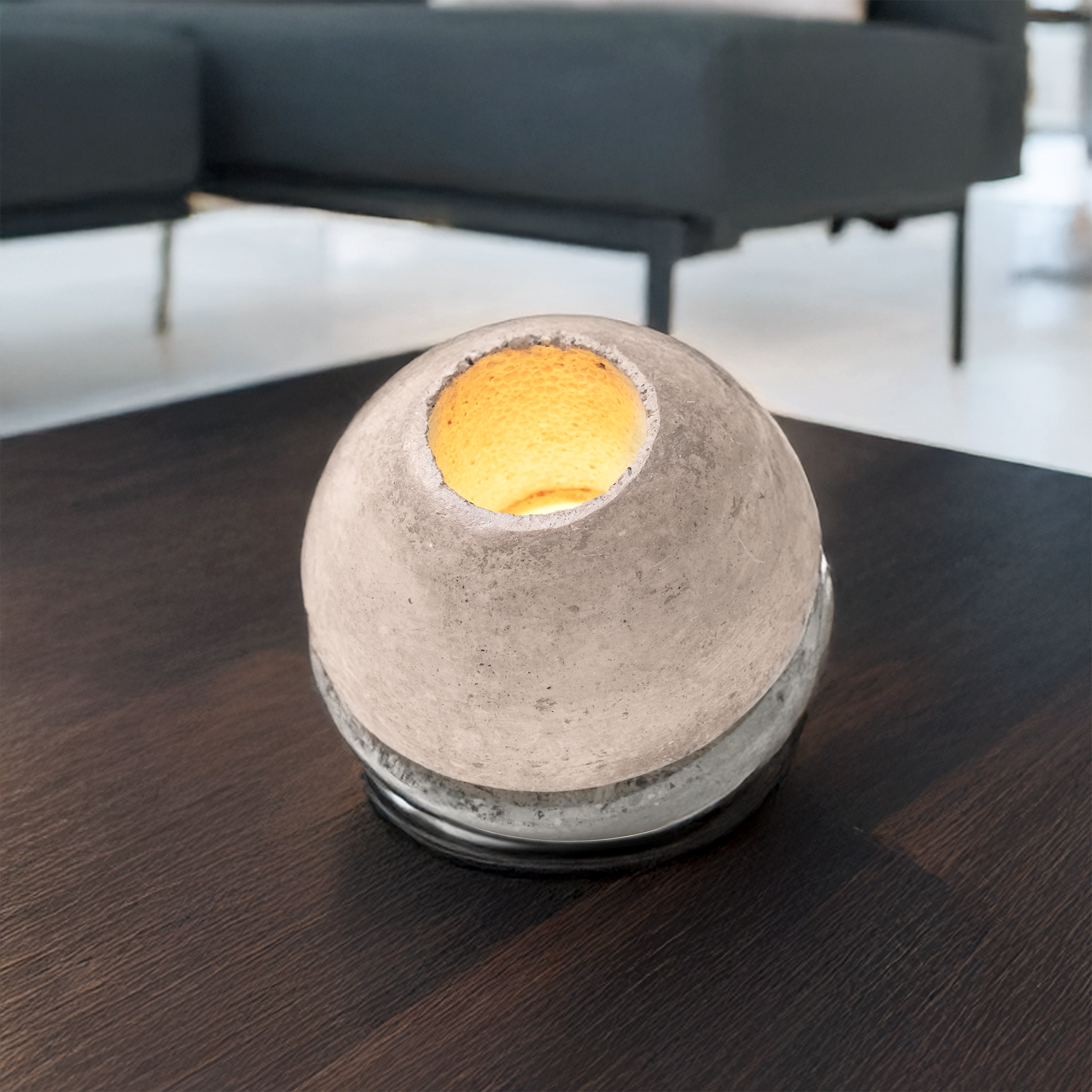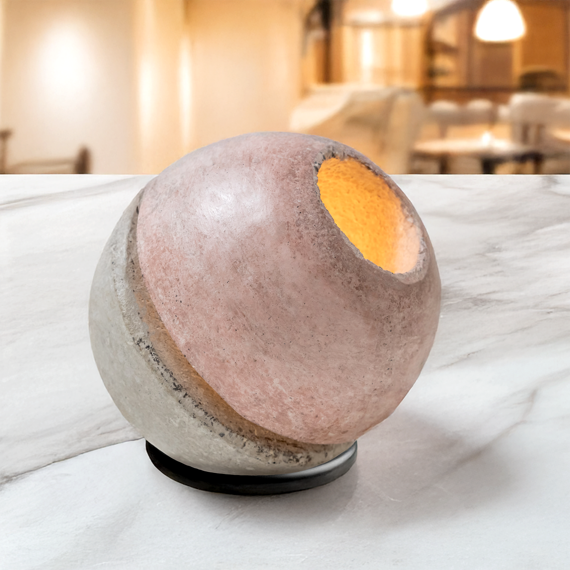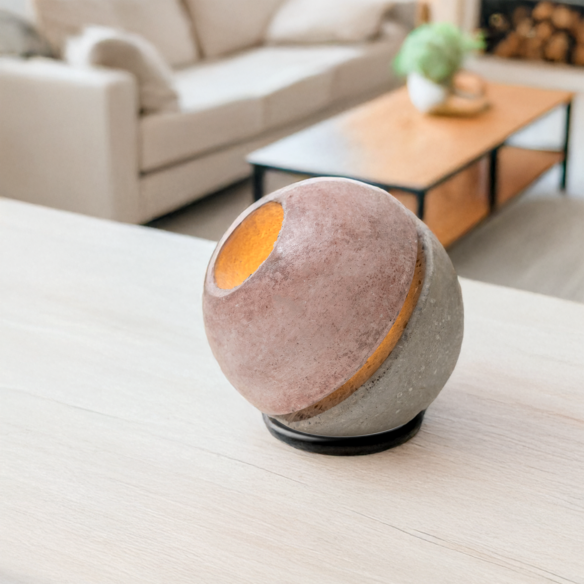 Decorative table lamp made entirely from natural materials such as stone and wood, handcrafted in Italy.