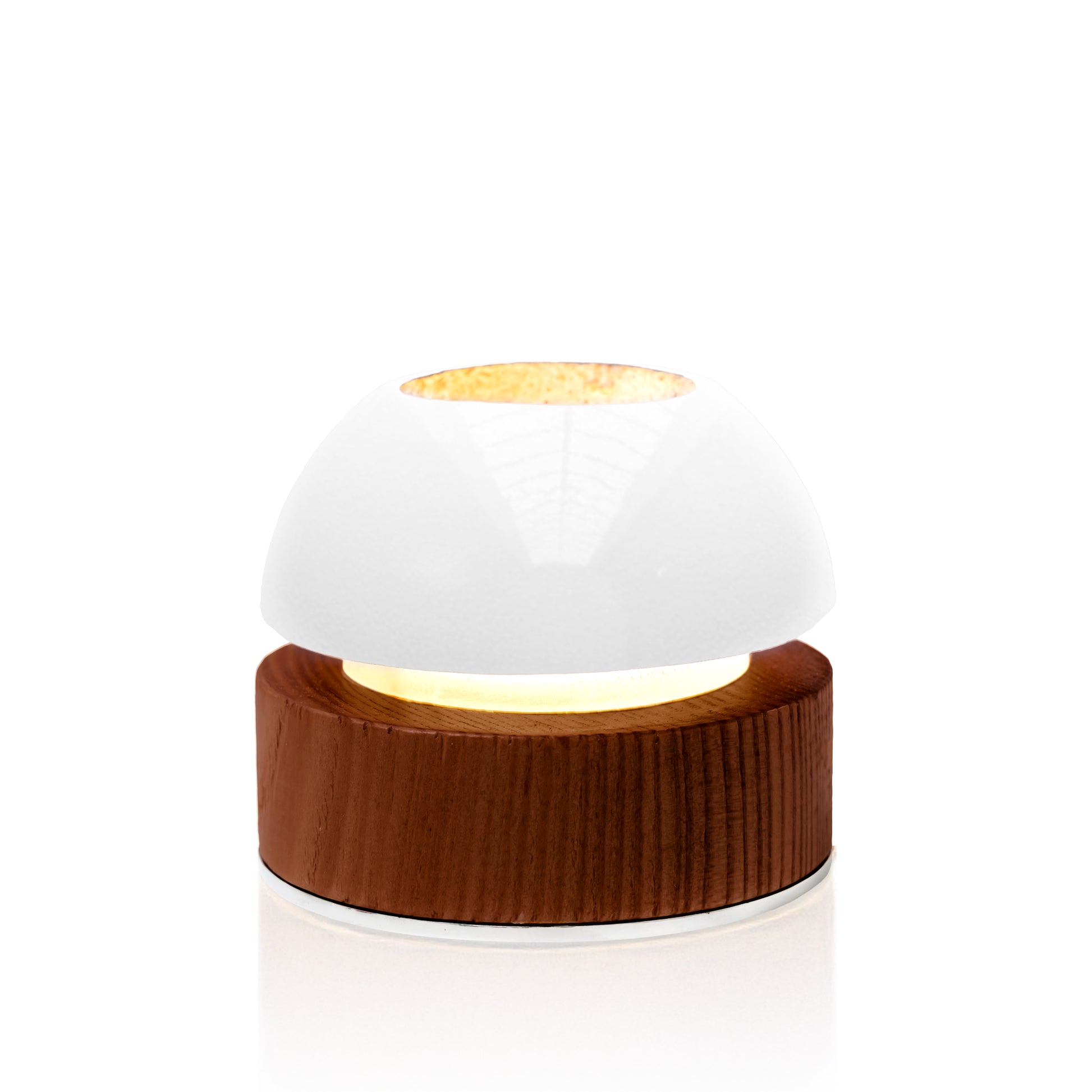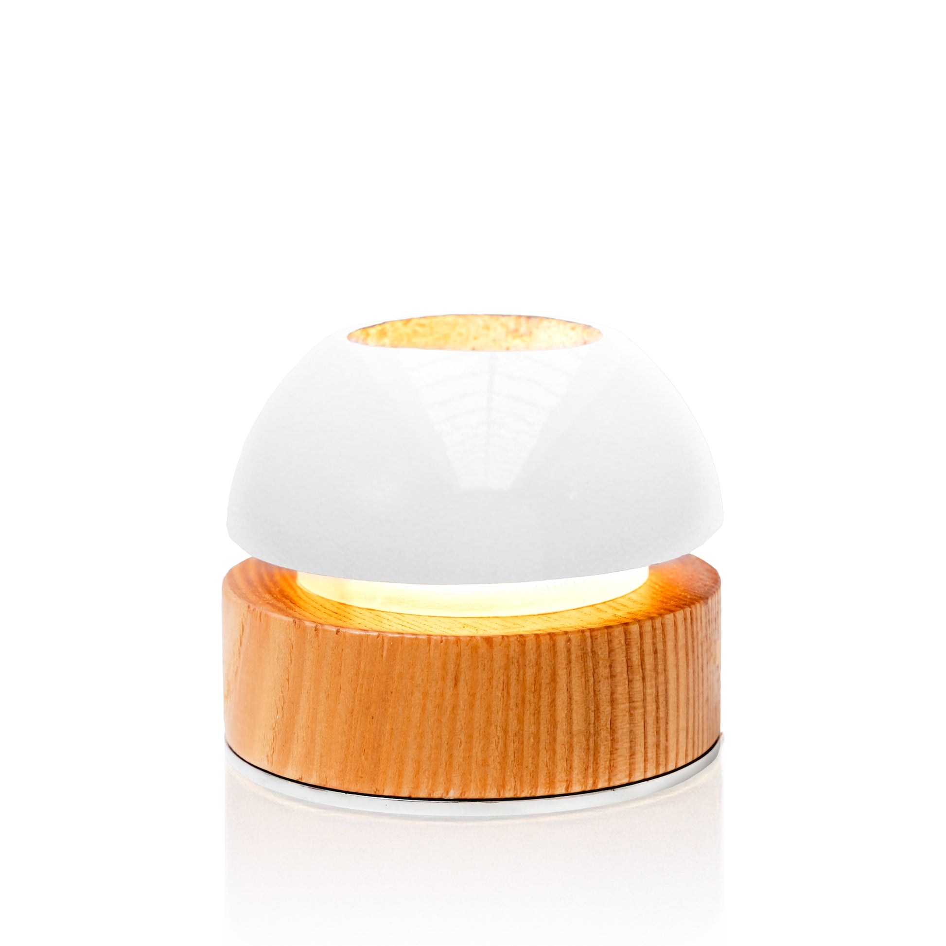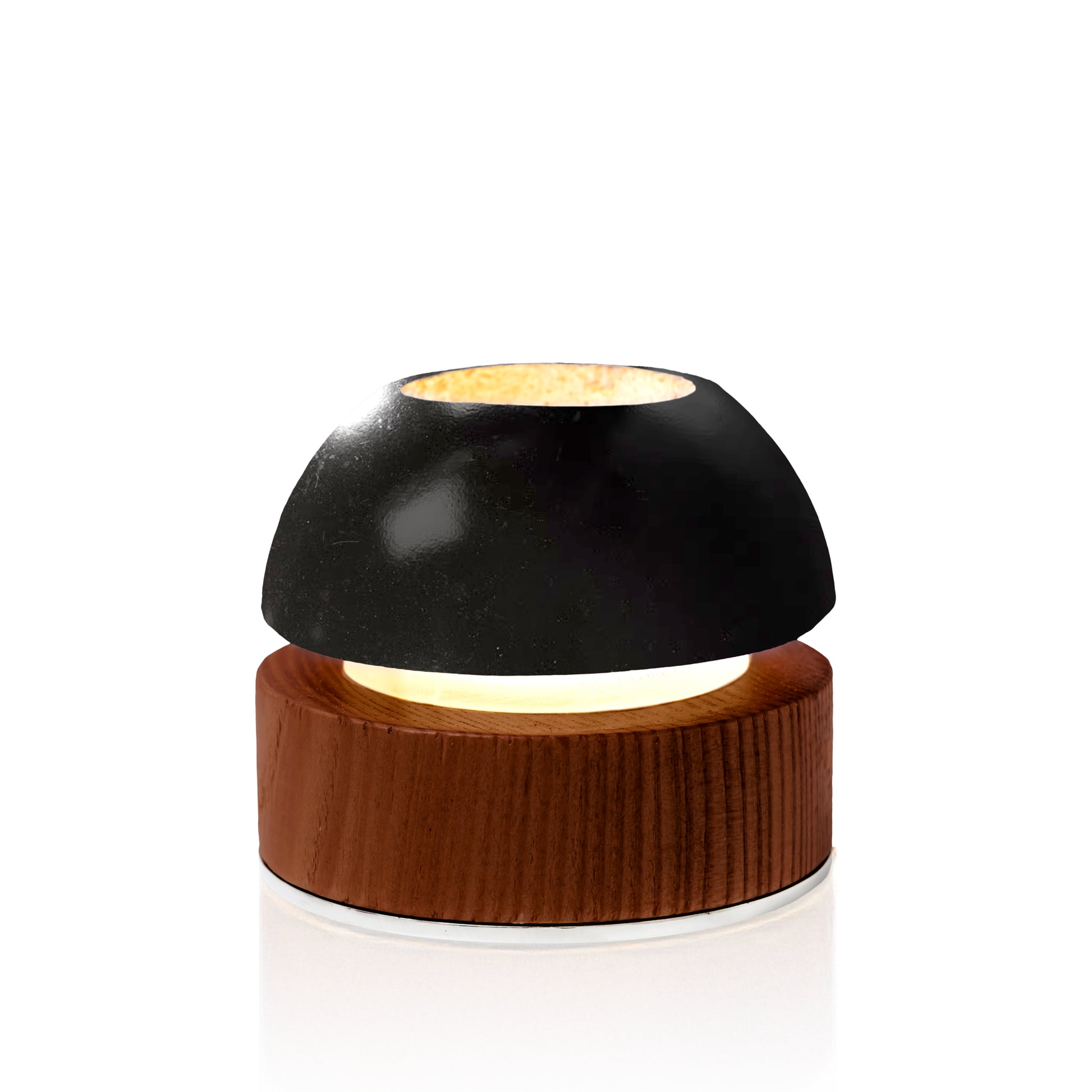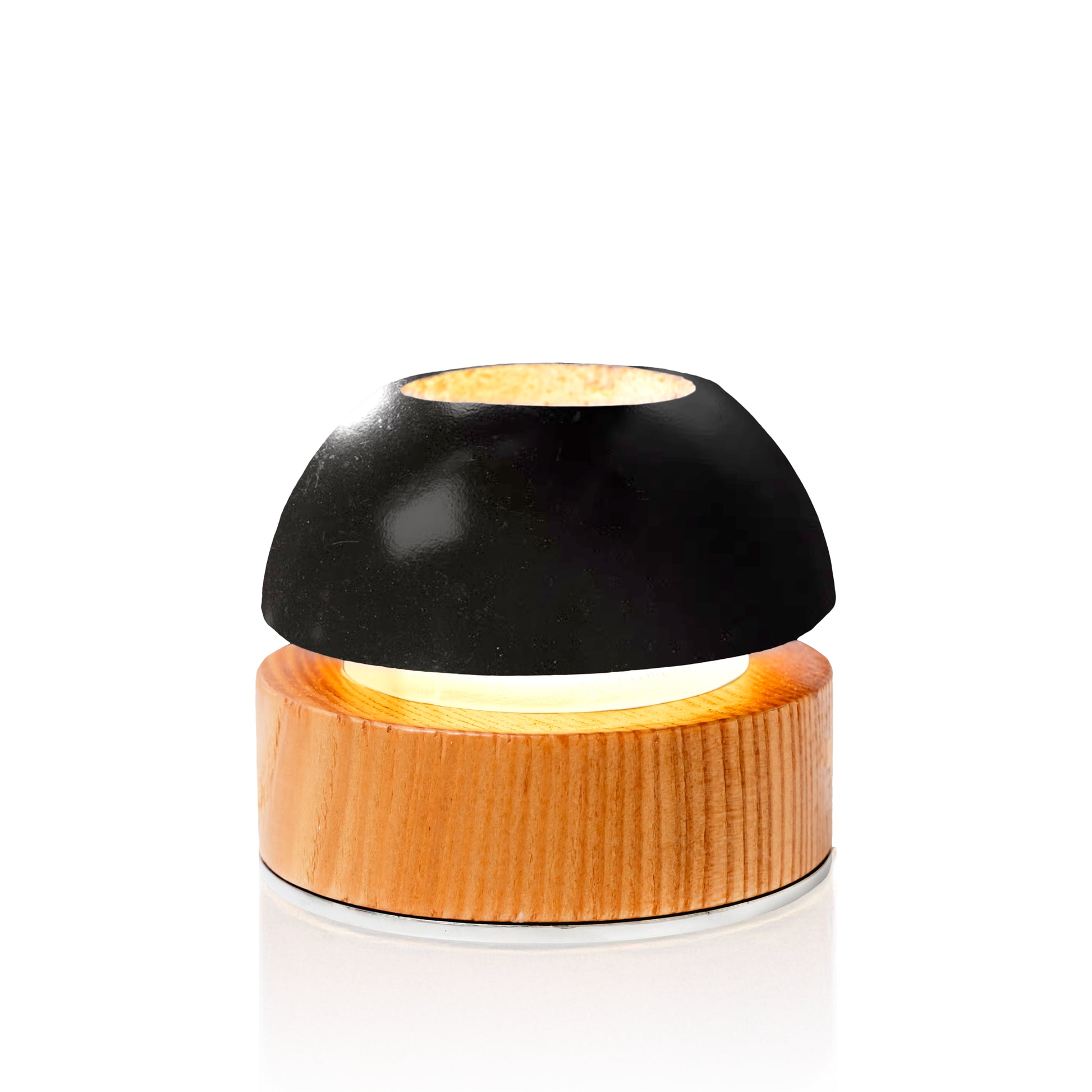 Lampada decorativa a luce soffusa, realizzata con materiali naturali come cemento e legno trattati con cera d'api, frutto di una lavorazione artigianale 100% italiana.
