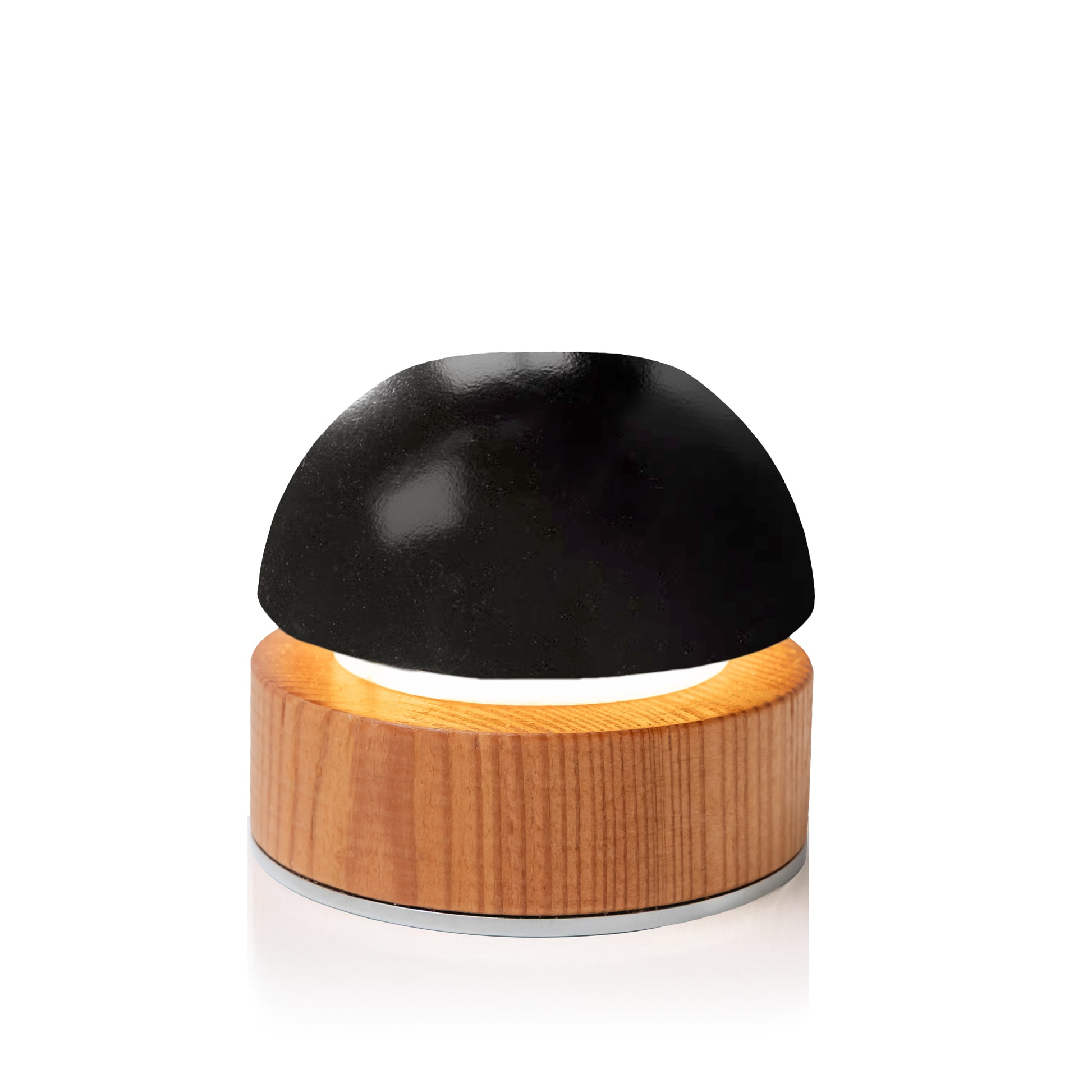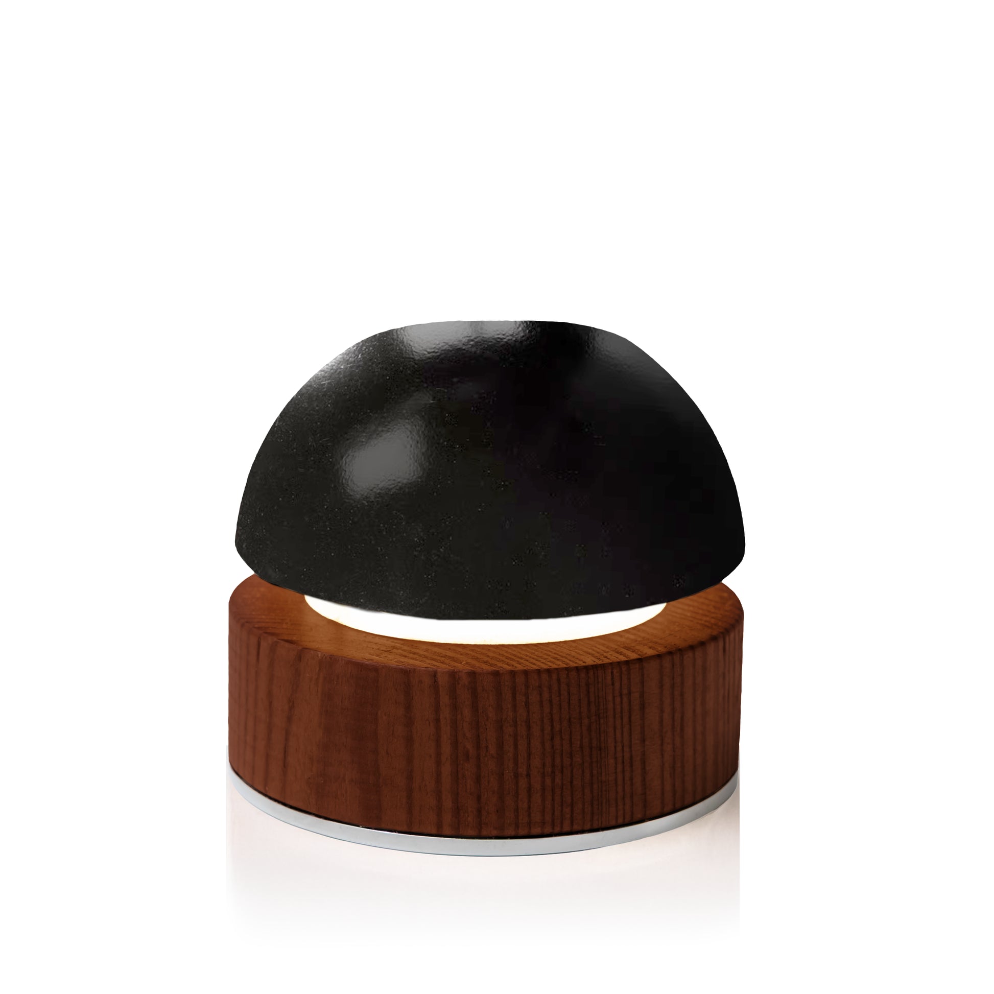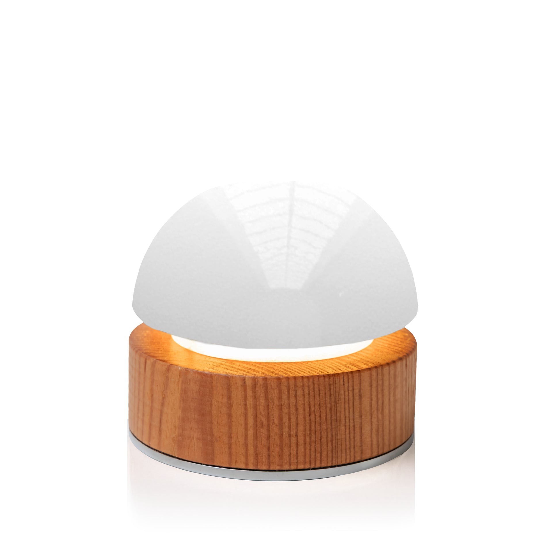 Lampada decorativa a luce soffusa, realizzata con materiali naturali come cemento e legno trattati con cera d'api, frutto di una lavorazione artigianale 100% italiana.
